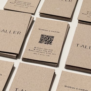 Tarjetas personales realizadas en cartón reciclado de 1 mm de espesor, con una estética rústica y auténtica que transmite solidez, conciencia material y carácter artesanal. La combinación de impresión en tinta a un color y hot stamping aporta contraste y jerarquía visual, logrando una pieza con fuerte personalidad y presencia.